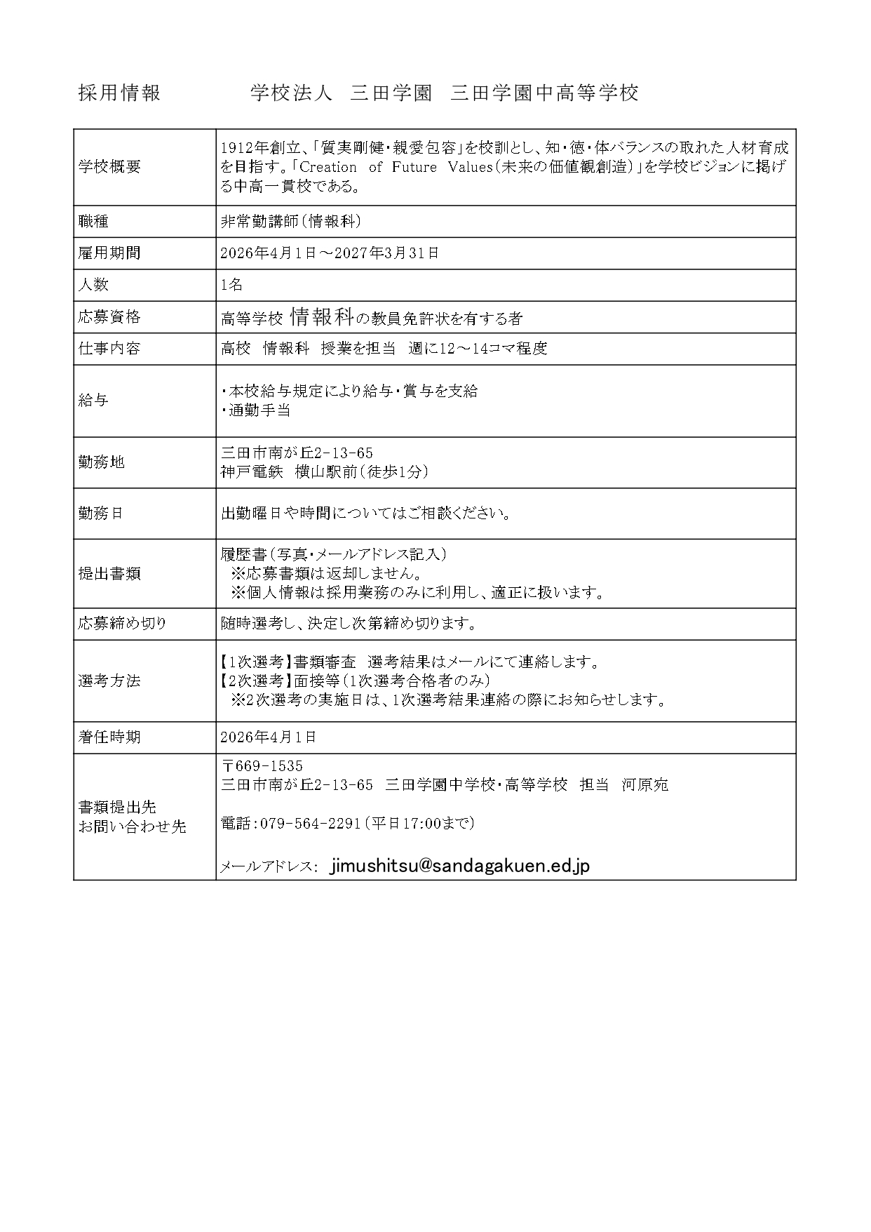 メールアドレス: jimushitsu@sandagakuen.ed.jp