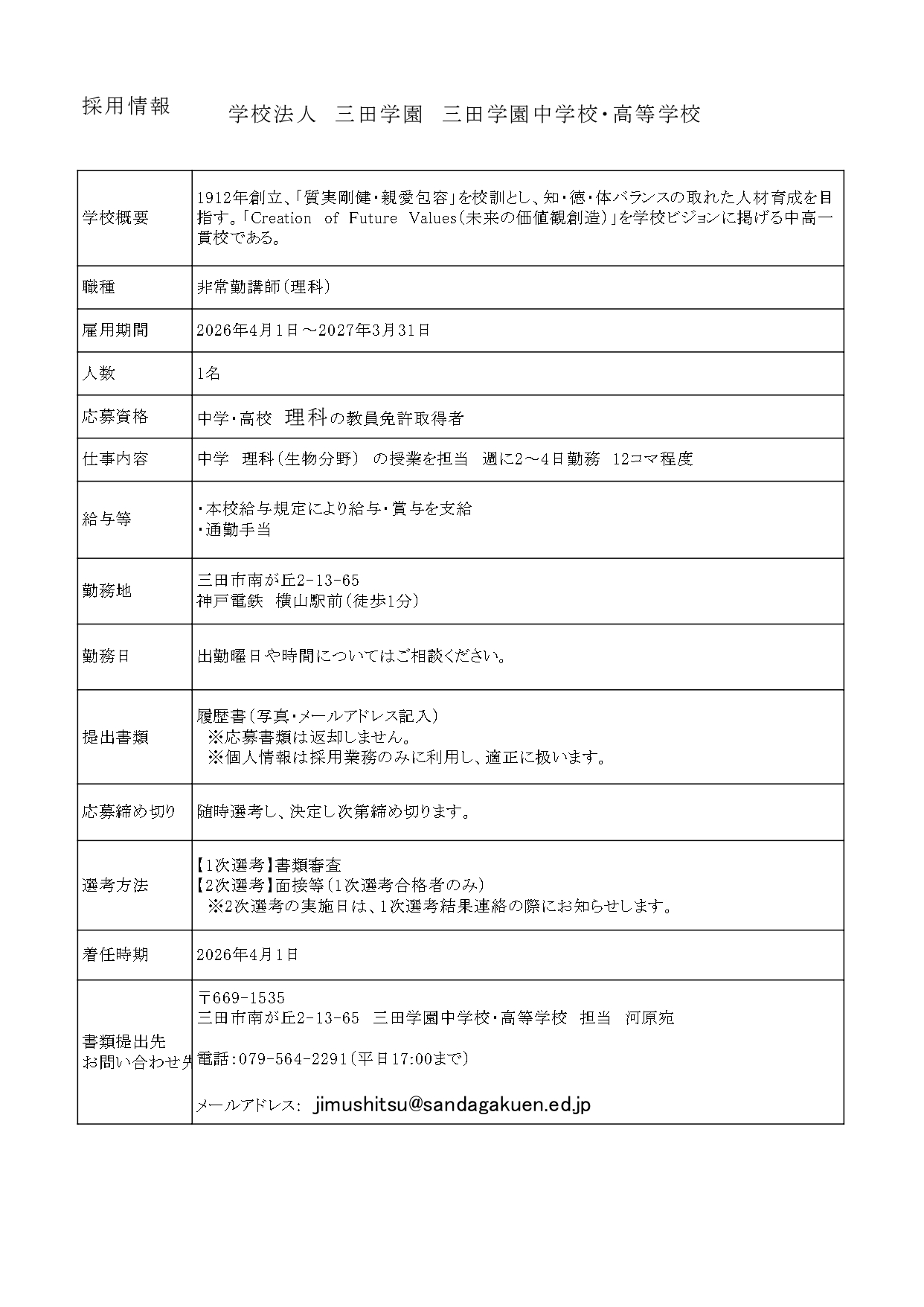 メールアドレス: jimushitsu@sandagakuen.ed.jp