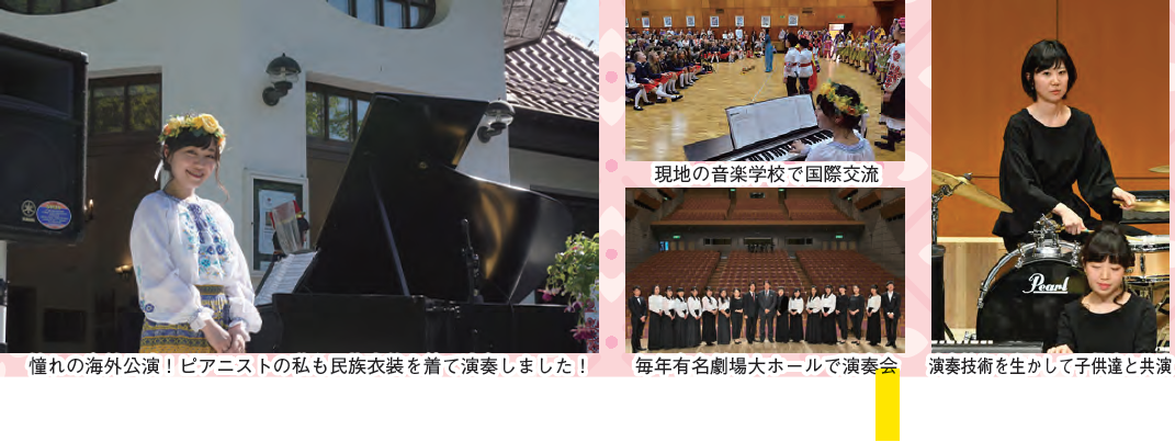 ◆合唱団は海外公演や有名劇場での演奏会など、積極的に活動しています。自分の専攻の楽器を活かして子供達と一緒にステージに立つ経験も多くあります。